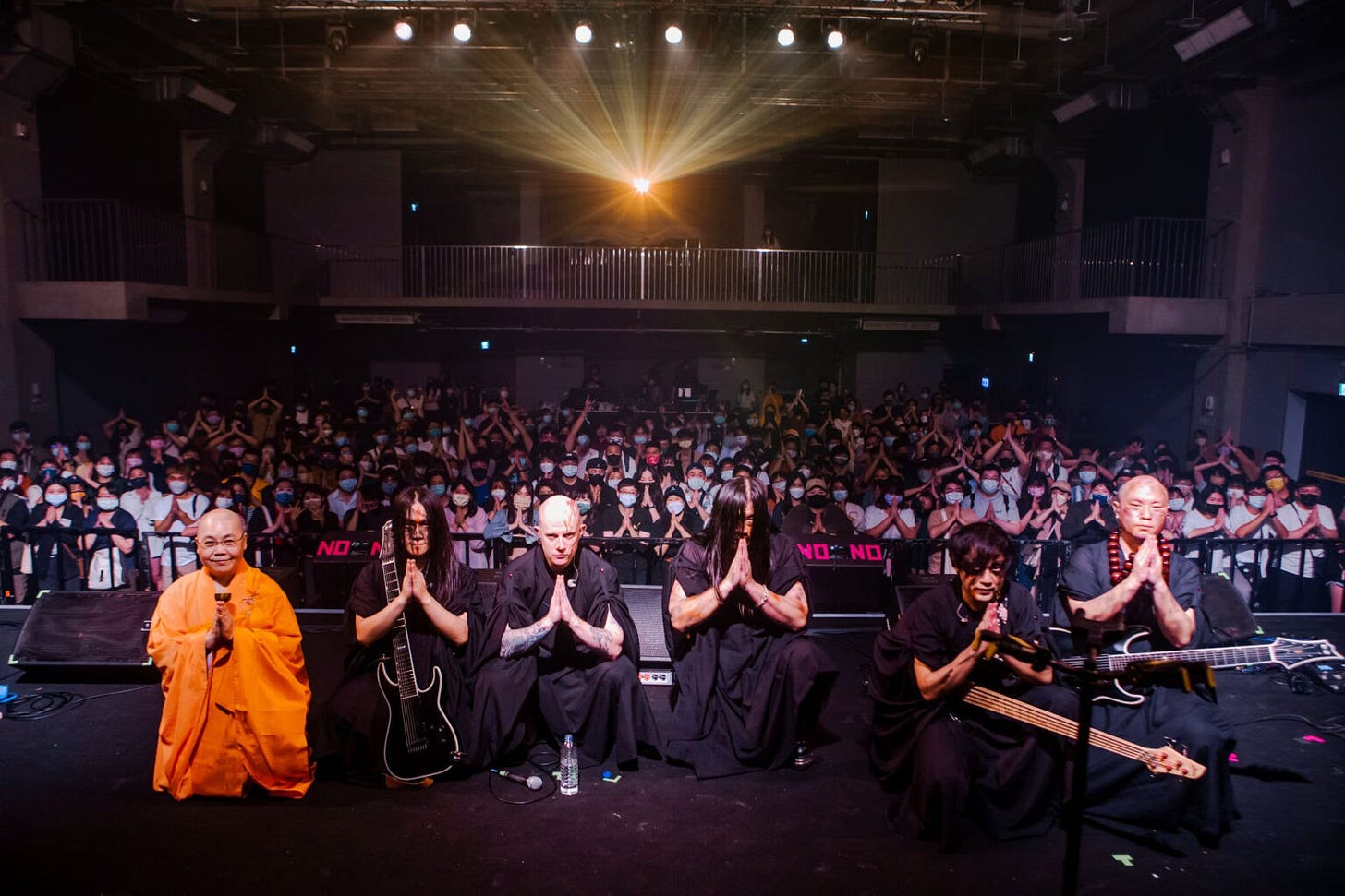 "We don't do Buddhist theatre," said the drummer in an interview. The five band members represent the Dharmapalas, wrathful guardian deities who prevent their sixth member (an ordained nun named Miao Ben) from straying off the path. They meditate together and donate parts of their fees to charities. The band has sparked heated conversation about sacrilege and new horizons for Buddhism, as well as Taiwanese cosmopolitanism and Taiwan independence. German philosopher Wolfgang Welsch wrote about Dharma in his textbook, Wir Sind Schon Immer Transkulturell Gewesen: Das Beispiel der Künste, as a prime example of fascinating transculturality and human growth.